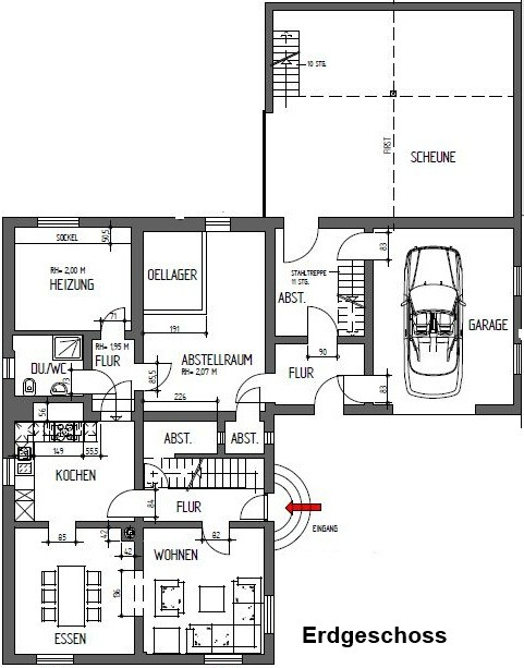 Das Haus wurde in traditioneller, massiver Bauweise errichtet und verfügt über eine gute Bausubstanz. Der großzügige Dachboden sowie weitere Nebenflächen (Scheune) bieten zusätzliches Potenzial – sei es als Abstellfläche, Hobbyraum oder bei Bedarf für eine gewerbliche Nutzung im kleinen Umfang, zum Beispiel durch selbstständige Handwerker oder Gewerbetreibende mit Lagerbedarf.