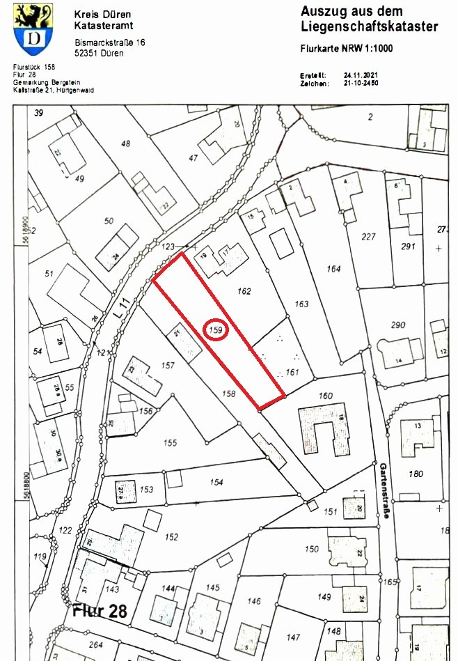 Das Grundstück liegt direkt an der Kallstraße in 52393 Hürtgenwald-Bergstein und ist somit größtenteils erschlossen.